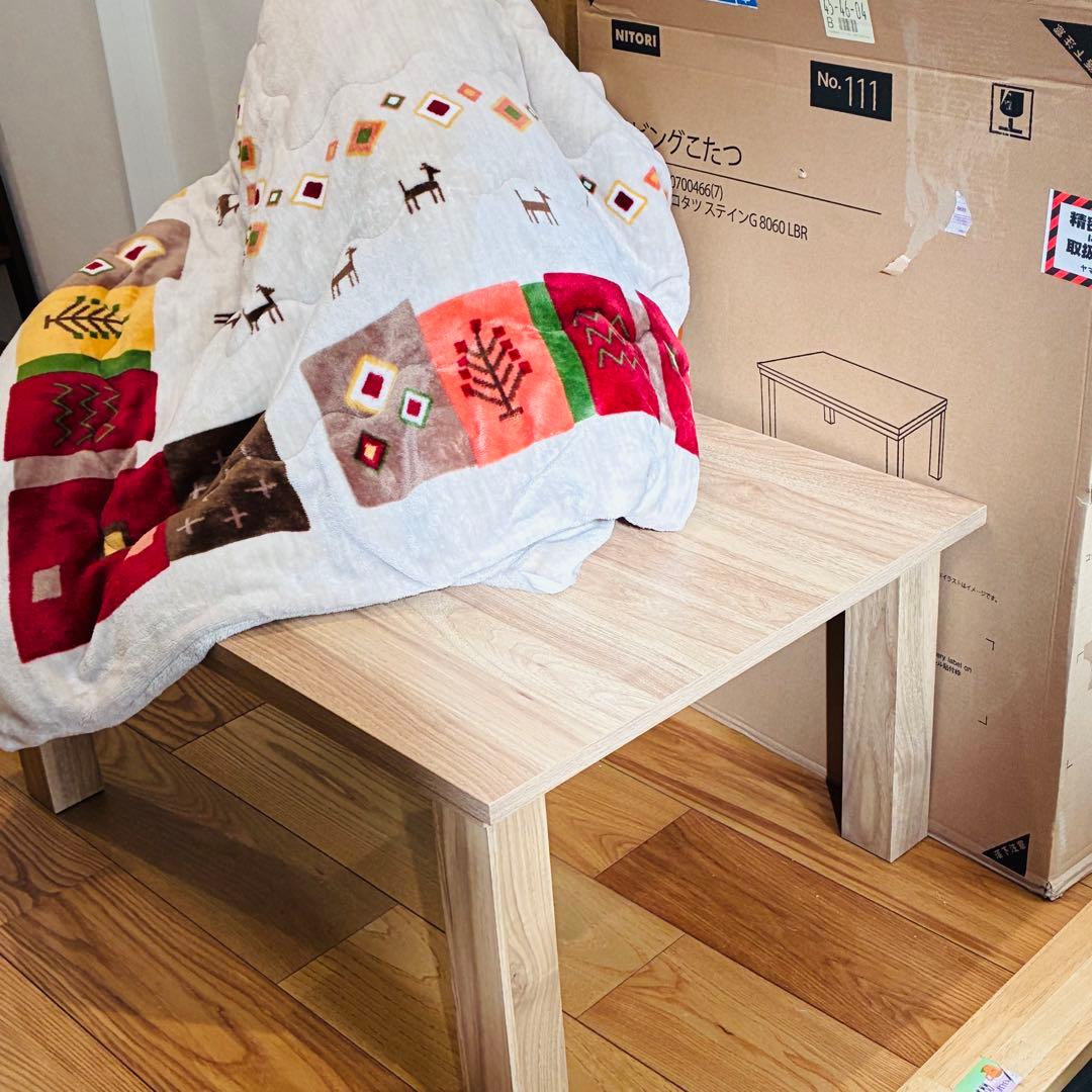 1年ほど使用。動作は問題ありませんが脚の部分に塗装剥がれがございます。直接引き取りの場合はお値引きさせて頂きます。埼玉県上尾市フラットヒーターこたつ(フロット G105VNA)色:ナチュラルサイズ:105✕ 70