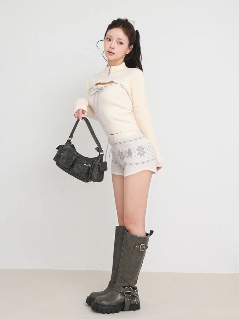- デザインはすごくかわいい!けど身長161の私には、袖も裾も丈が短いのが残念です。ハイウエストじゃないとお腹出そうです。
